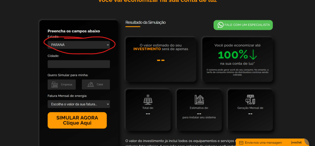 É importante selecionar o estado em que você mora corretamente, pois, cada estado possui suas características em relação a incidência do sol e ângulo de inclinação dos painéis solares para melhor aproveitamento.