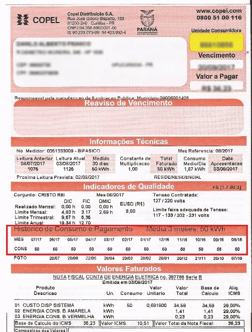 Realizando a média de consumo desses meses obtemos um valor mais exato e melhor dimensionamento para cada caso.